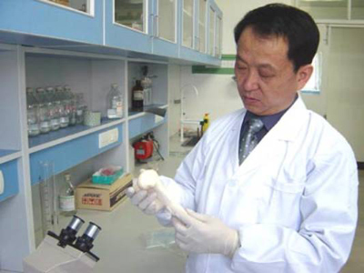 李宝兴和同事们反复试验,寻找临床试用出现不良症状的原因,结果发现,主要是因为原材料中的蛋白质等的留存度过高。找到问题就可以对症下药了,怎样才能使这些物质的留存度最少呢?清洗是核心技术,怎样洗、洗几遍才能洗干净而不会损坏原有材料的骨结构?李宝兴和同事们反复试验,反复清洗,终于掌握了一套不同时长、不同水流清洗的技术。